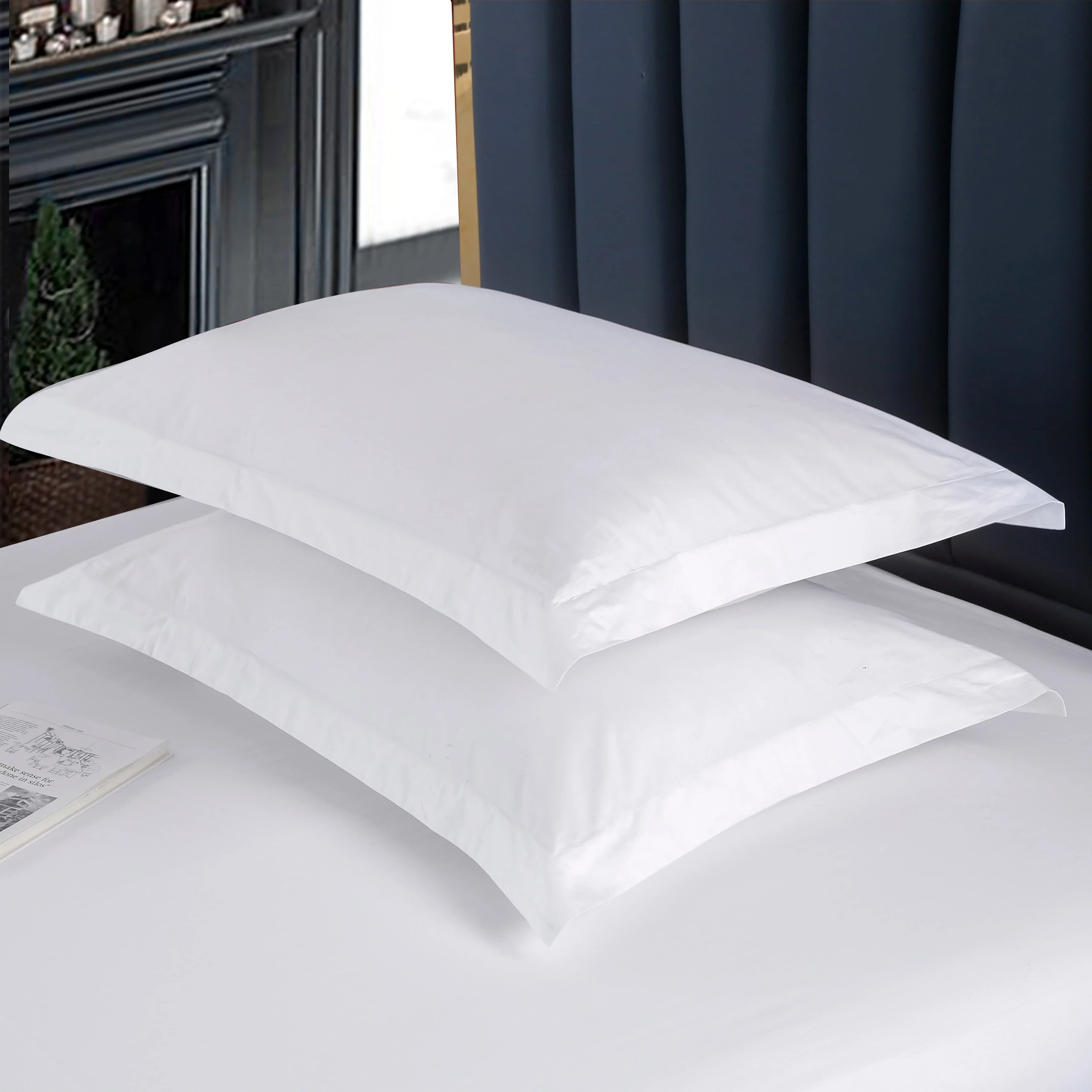 CHENHONG White 3cm Stripe Double Bedding Set 100% Cotton 300tc Fabric Count 40 Eco-Friendly Anti-Pilling Non-Toxic Modern Hotel